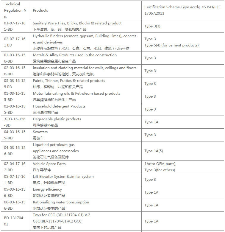 对于目前没有涵盖在SASO/GSO Technical Regulations下的产品依旧需要按照之前的程序,每批货物取得CoC清关证书。